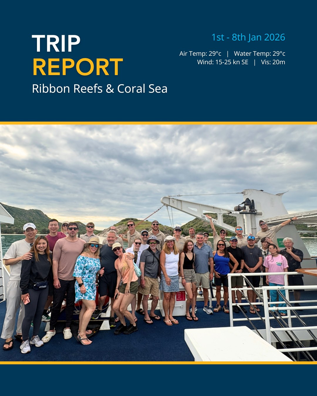 With water temperatures hovering around 29°C, January is a peak time for biodiversity. This month delivered some truly standout moments, including breath taking in-water encounters with pilot whales and a majestic whale shark. Out in the Coral Sea, the shark action remained consistent, providing world-class diving for our adventurous guests.