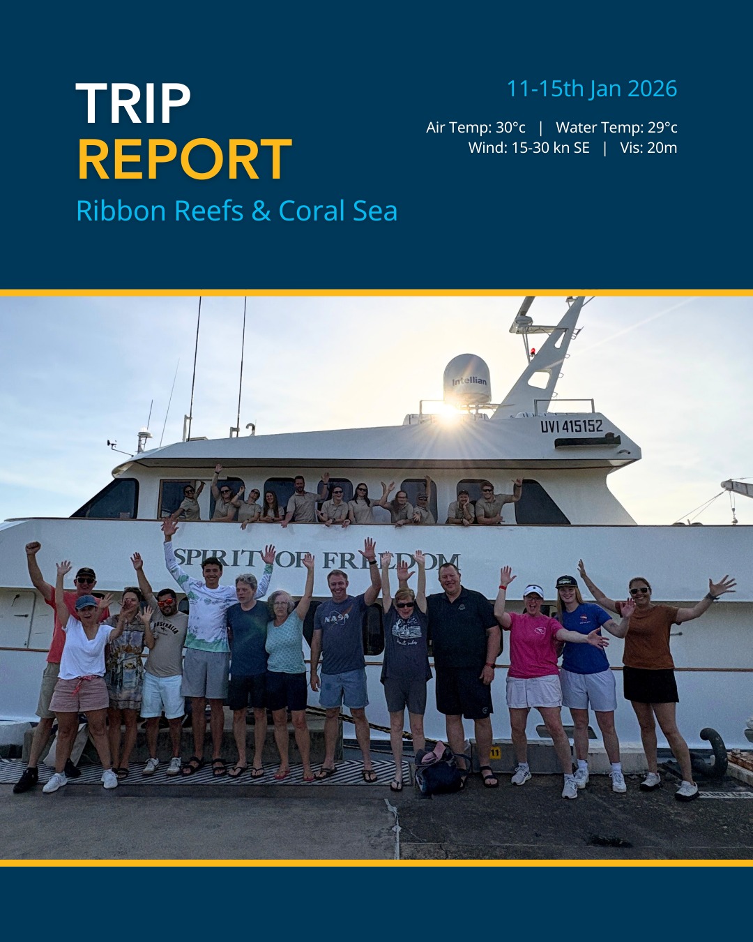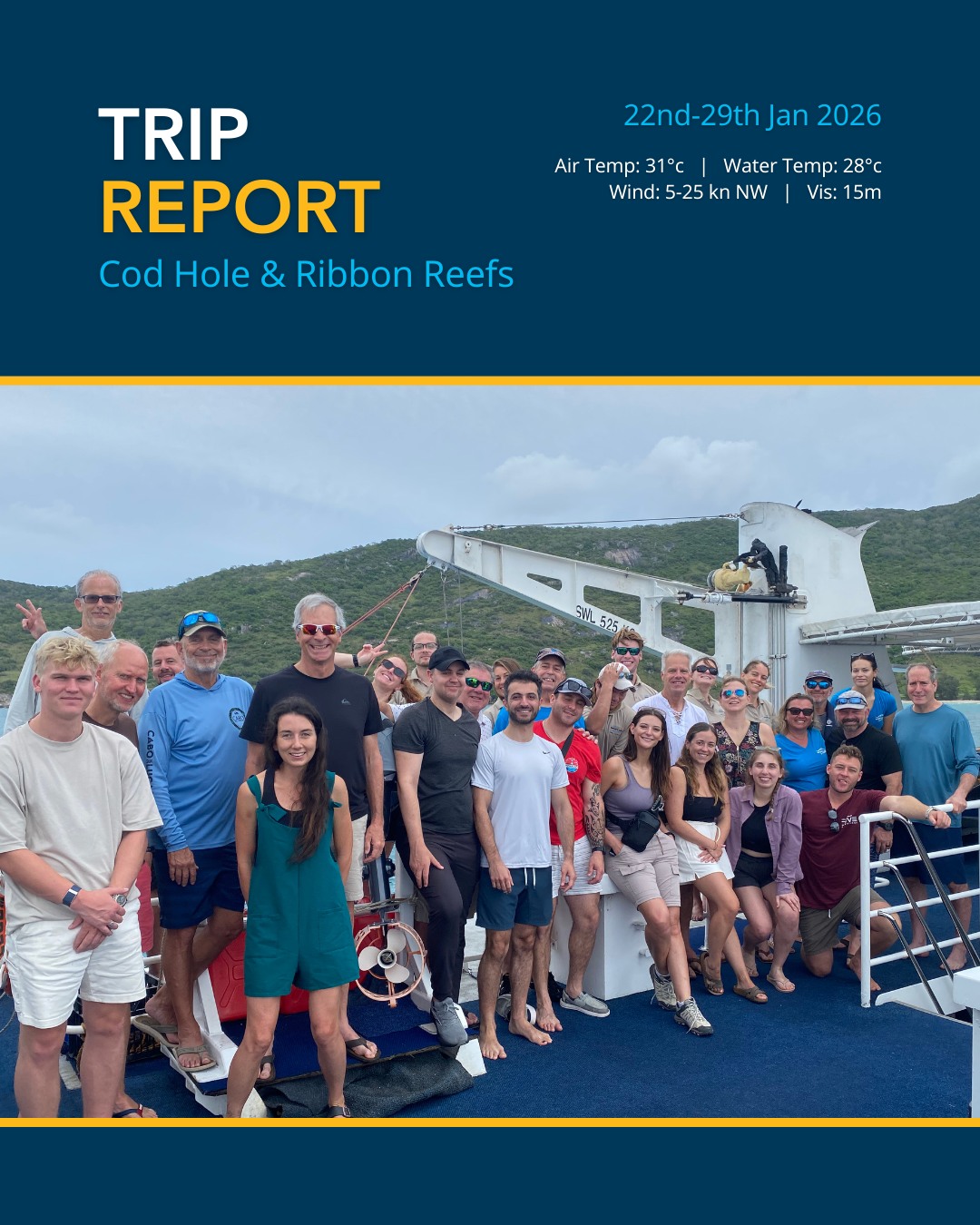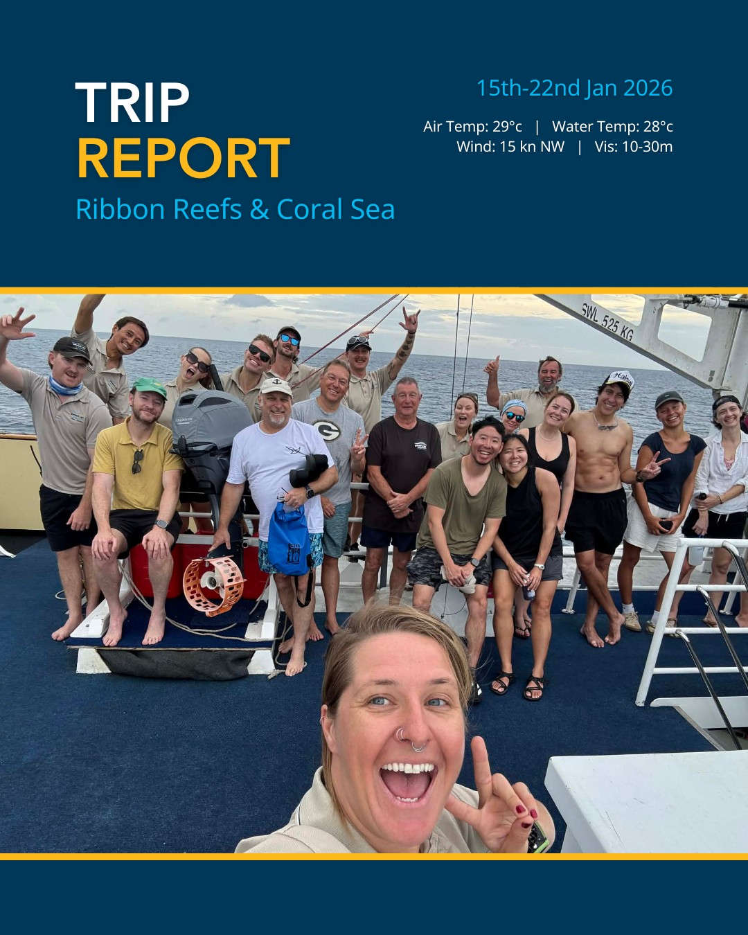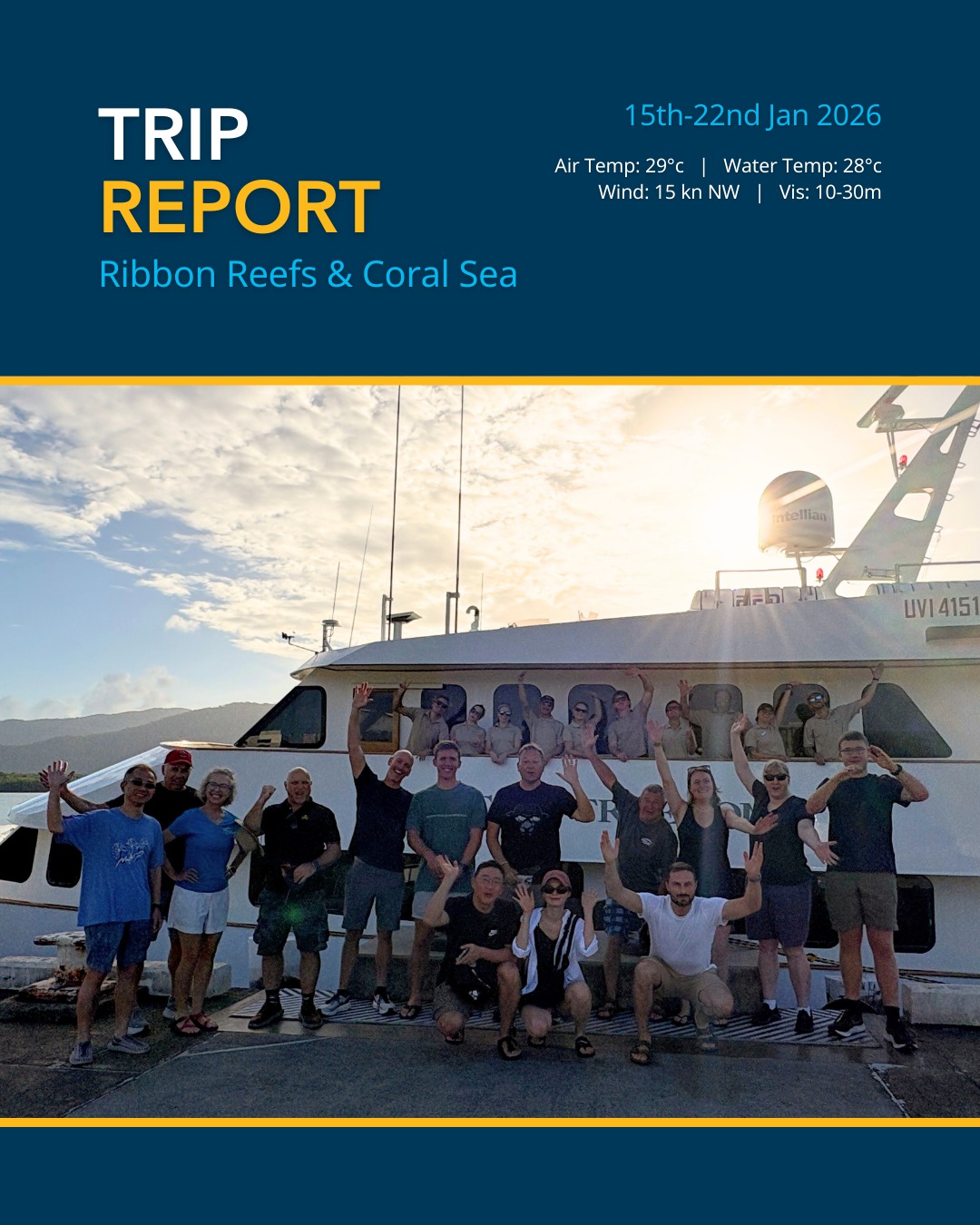 Conditions: Water 28°C | Vis 10-30m | Wind 15 kn NW